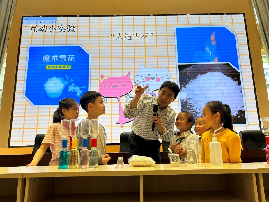 随后的“人造雪花”和“水龙卷”两个互动科普小实验,让同学们实实在在的感受到科学知识的力量,激发了同学们对气象知识更大的兴趣,使同学们了解在日常生活里与我们息息相关的天气现象中的大气科学奥秘。