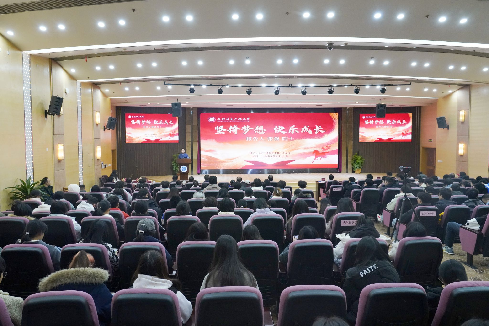 张强院士在学校国际会议厅作了题为“坚持梦想 快乐成长”的励志报告。学校党委书记沈火明、校长何建新出席,部分老教师代表,党政办公室、校友办公室、炸金花下载