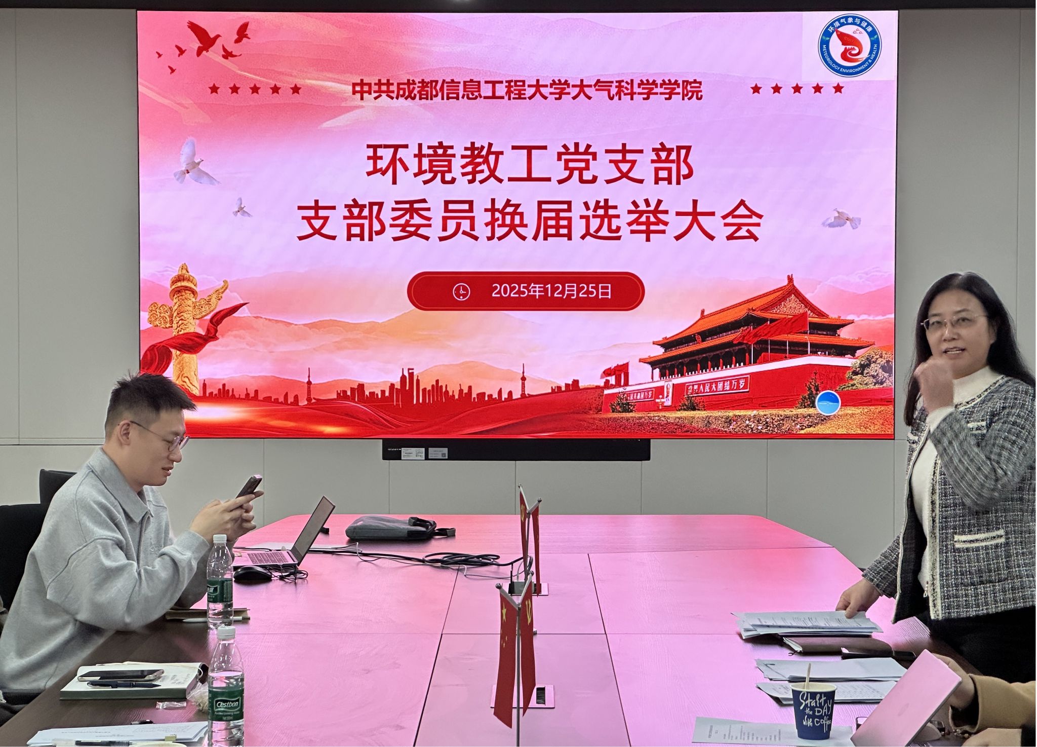 根据《中国共产党章程》《中国共产党基层组织选举工作条例》规定,环境气象教工党支部于12月25日下午在新气象楼807会议室召开党员大会,圆满完成换届选举工作。支部14名党员参会,会议由支部书记张小玲主持。