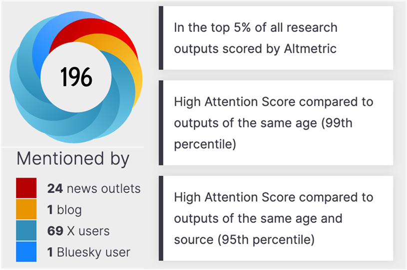研究成果发表后,已引起了国际学术界和媒体的广泛关注。据Nature论文页面引用的Altmetric统计数据,相关成果已被来自全球24家媒体的新闻报道所引用和解读,并在社交媒体上引发讨论,显示出社会各界对火山喷发及其气候影响问题的广泛关注。英国高性能计算平台(ARCHER2)评选其为年度高影响力科学研究,团队成员周欣副教授将在ARCHER2科学庆典作特邀报告。