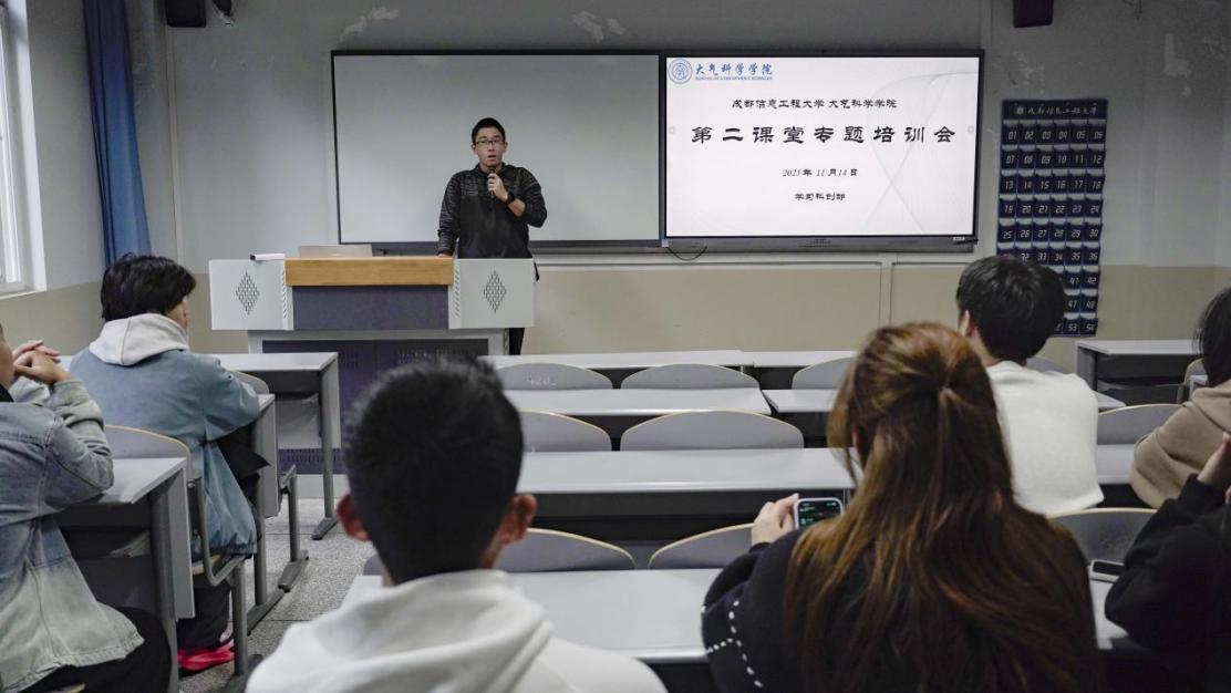 团委学生会学习科创部在航空港校区4208教室组织召开了“第二课堂”专题培训会。本次培训由学习科创部“第二课堂”工作负责人李祉余主讲,2025级各班学生代表参与学习。