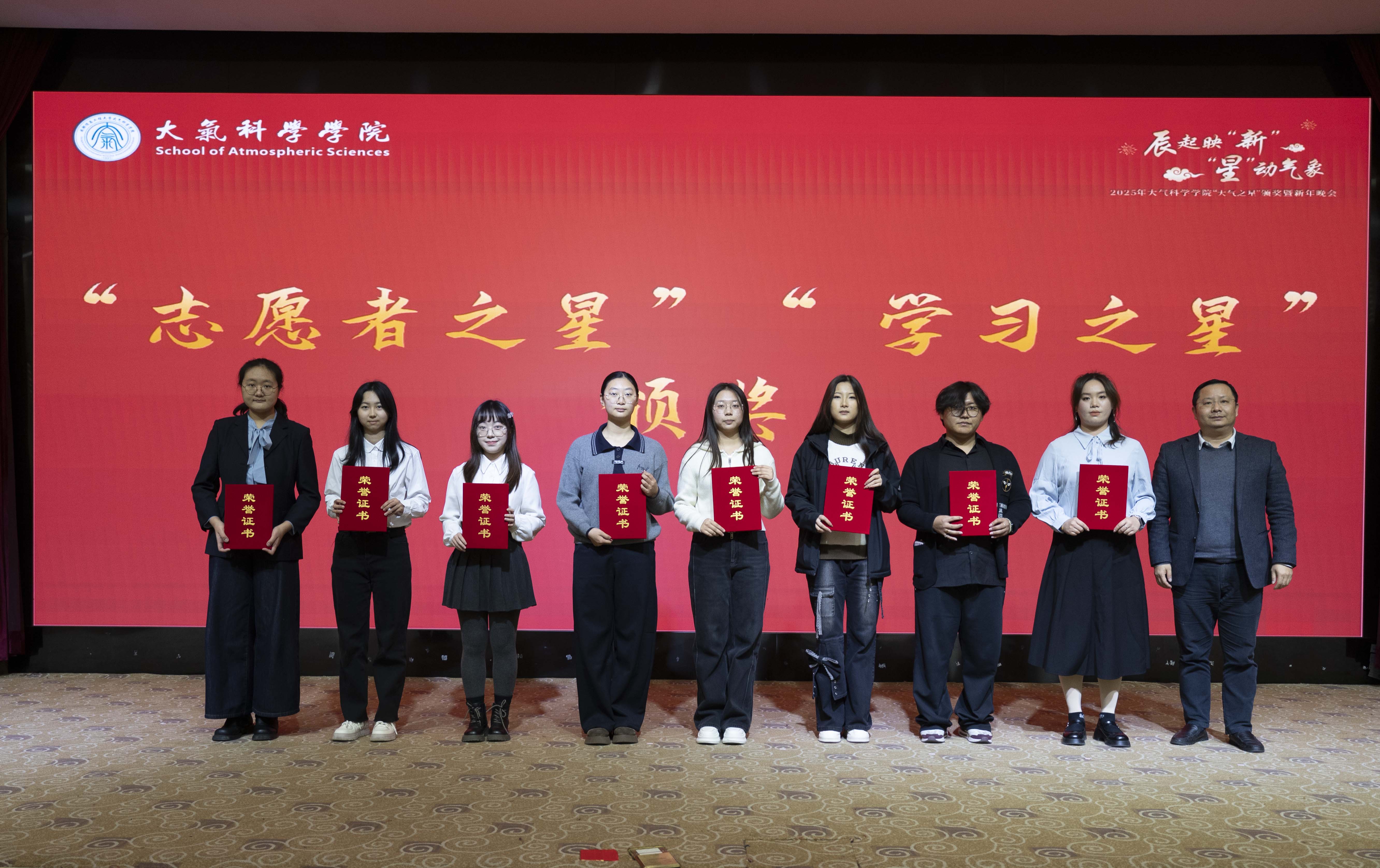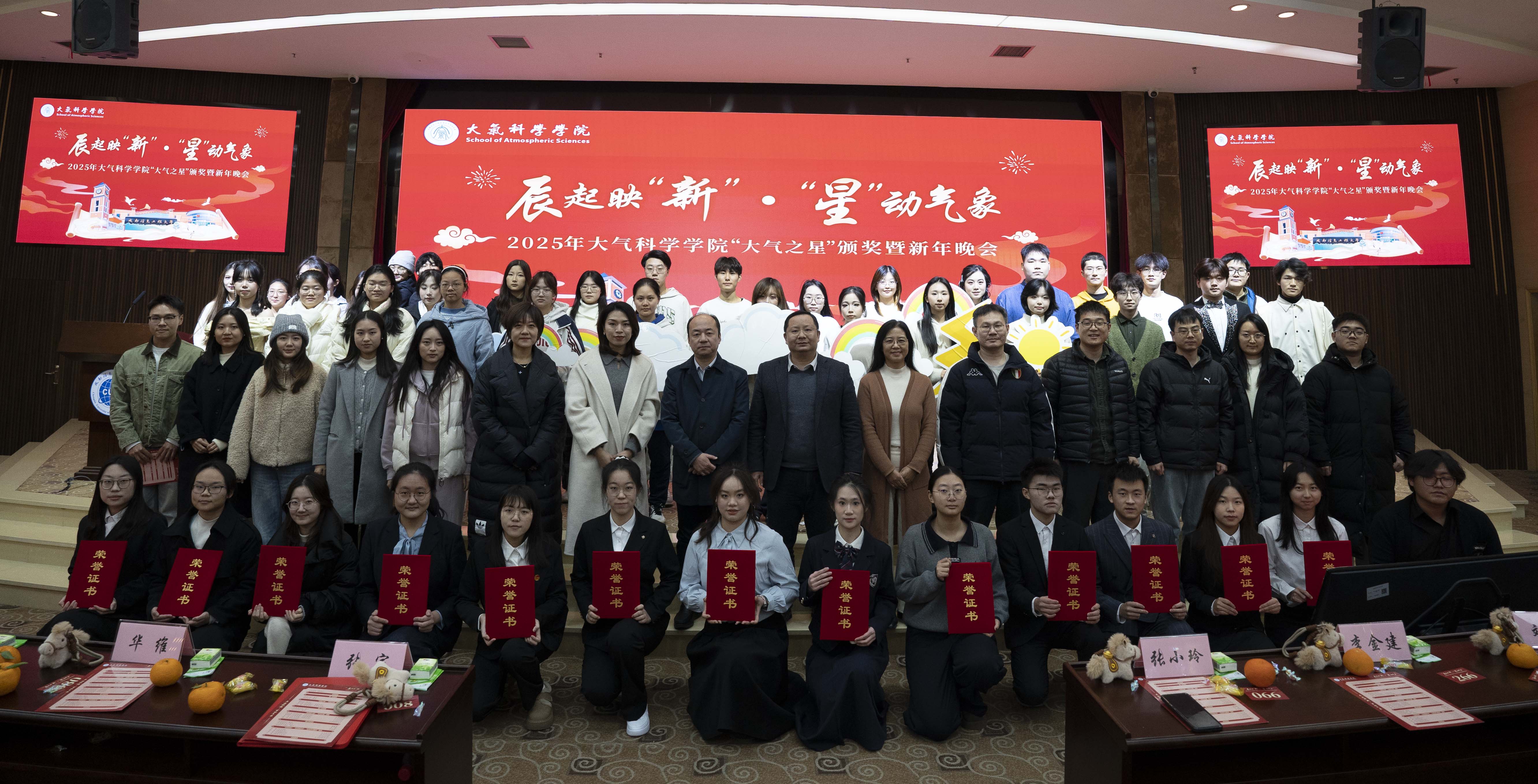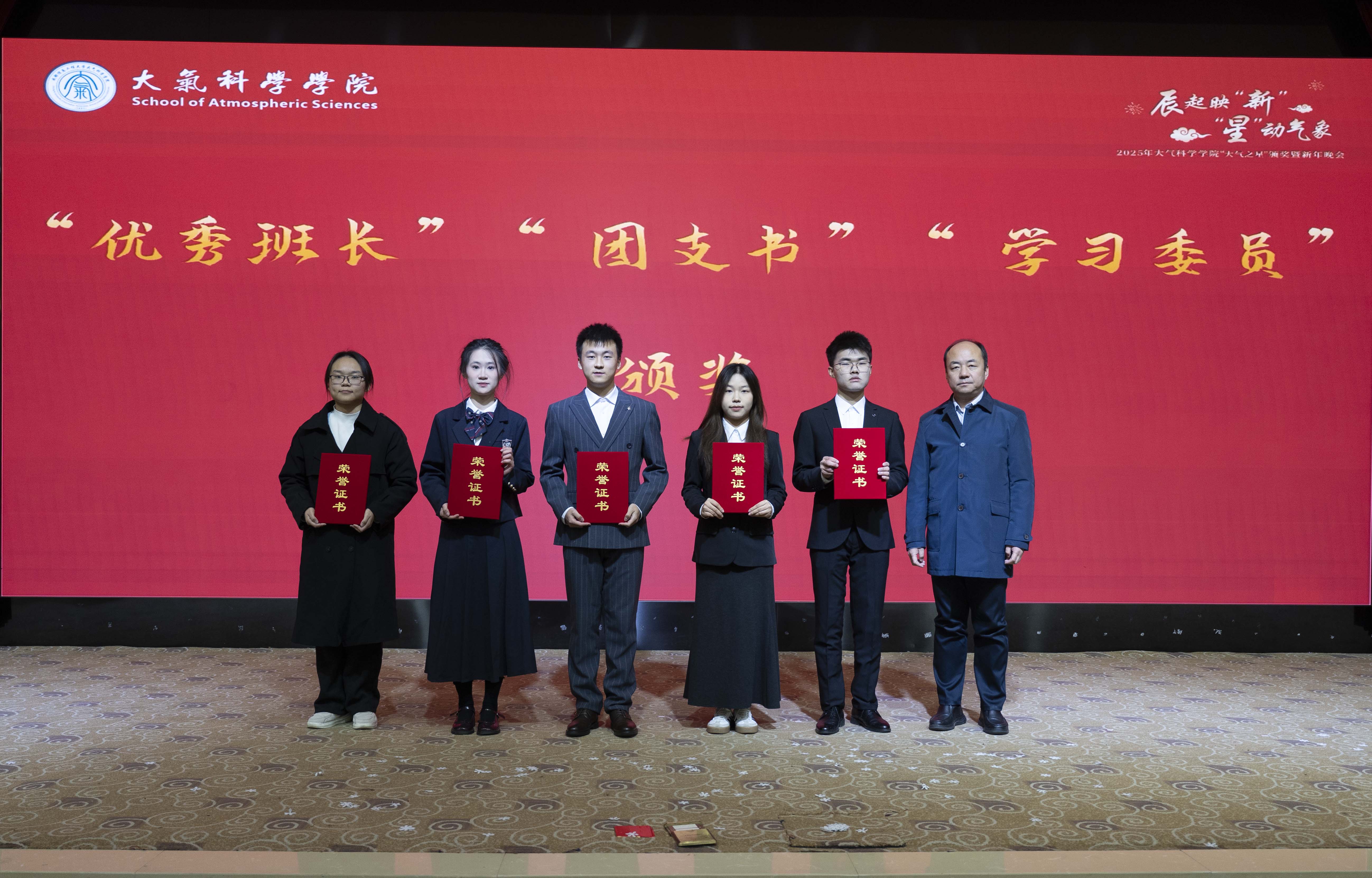 向全体师生致以新年问候,并向辛勤筹备晚会的师生致以感谢。张宇指出,“辰起映‘新’”寓意在崭新的起点携手前行,将个人成长融入气象事业和国家发展;“‘星’动气象”旨在表彰先进、树立榜样,让优秀学子的光芒激励更多人。他勉励同学们,既要胸怀探索大气科学的理想,也要练就扎实的专业本领,努力成长为堪当大任的气象人才。他特别鼓励2025级新生以获奖同学为榜样,勇敢探索,不断进步。