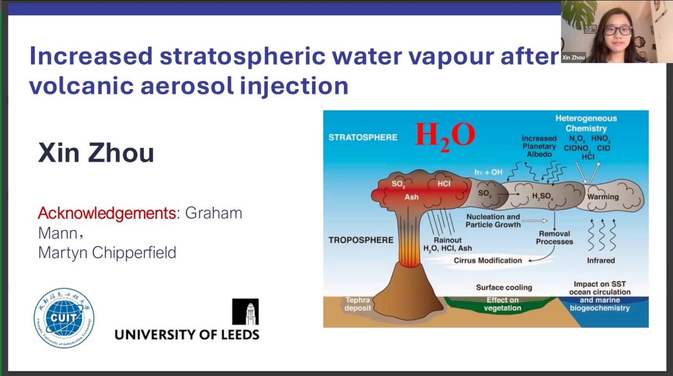 教师周欣副教授应邀参加了“Stratospheric Aerosol Injection (SAI) Workshop”,并作题为《Increased stratospheric water vapour after volcanic aerosol injection》的学术报告。